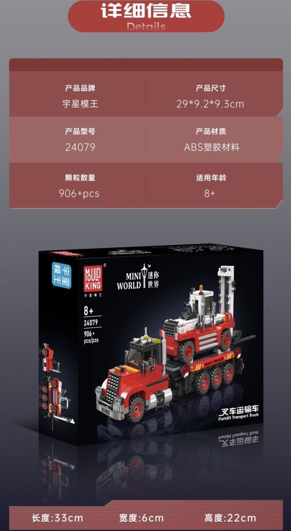 商品詳情 產品名稱:叉車運輸車 產品品牌:宇星模王 Mouldking 產品編號:24079 積木數量:906+pes 包裝尺寸:30x22x10cm 適合年齡:14 歲以上 商品材質:ABS塑膠 ⭐️全館滿千免運⭐️ ⭐️動態配掛二代電機⭐️ 宇星 24079 叉車運輸車 TWD $990 TWD $990